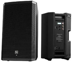 Two Electro-Voice ZLX-12P loudspeakers controlled by the Mackie ProFX8v2 8-Channel Professional FX Mixer with USB.