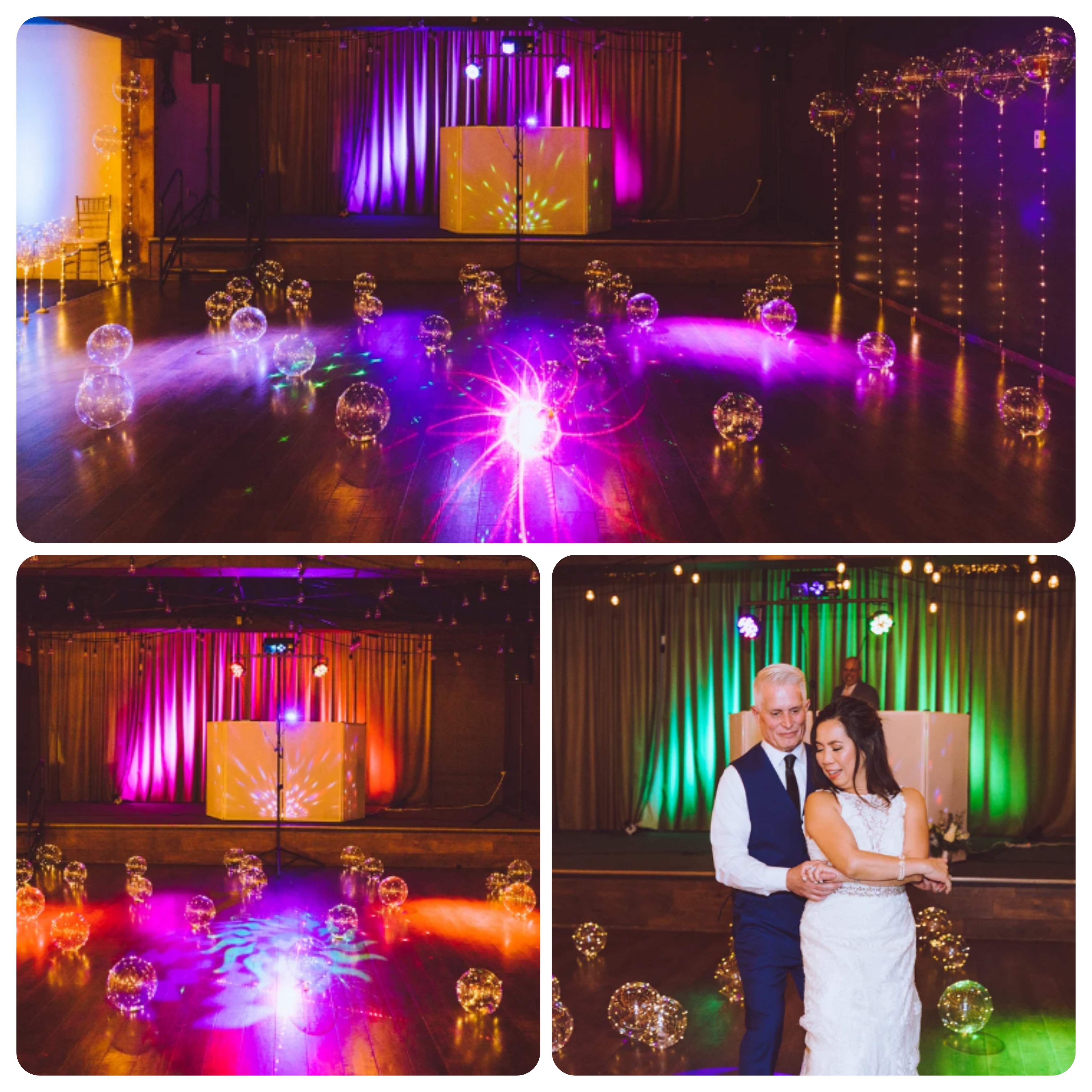 The two photos above feature our 4 in 1 multi-effect lighting array used as the principle dance floor unit.